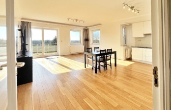 Au 3eme étage / 6 d'un immeuble de qualité des années 90, cet appartement lumineux de 3 façades, récemment rénové vous accueille avec un hall dentrée doté dun vestiaire et dun WC invité, qui mène à un spacieux salon et une salle à manger avec cuisine ouverte contemporaine entièrement équipée ( électroménager Whirpool ). avec accès à une superbe terrasse de 10 m², orientée sud-ouest, offrant une vue imprenable sur la réserve du Kinsendael. Attenant au salon, un bureau ou de chambre complémentaire.